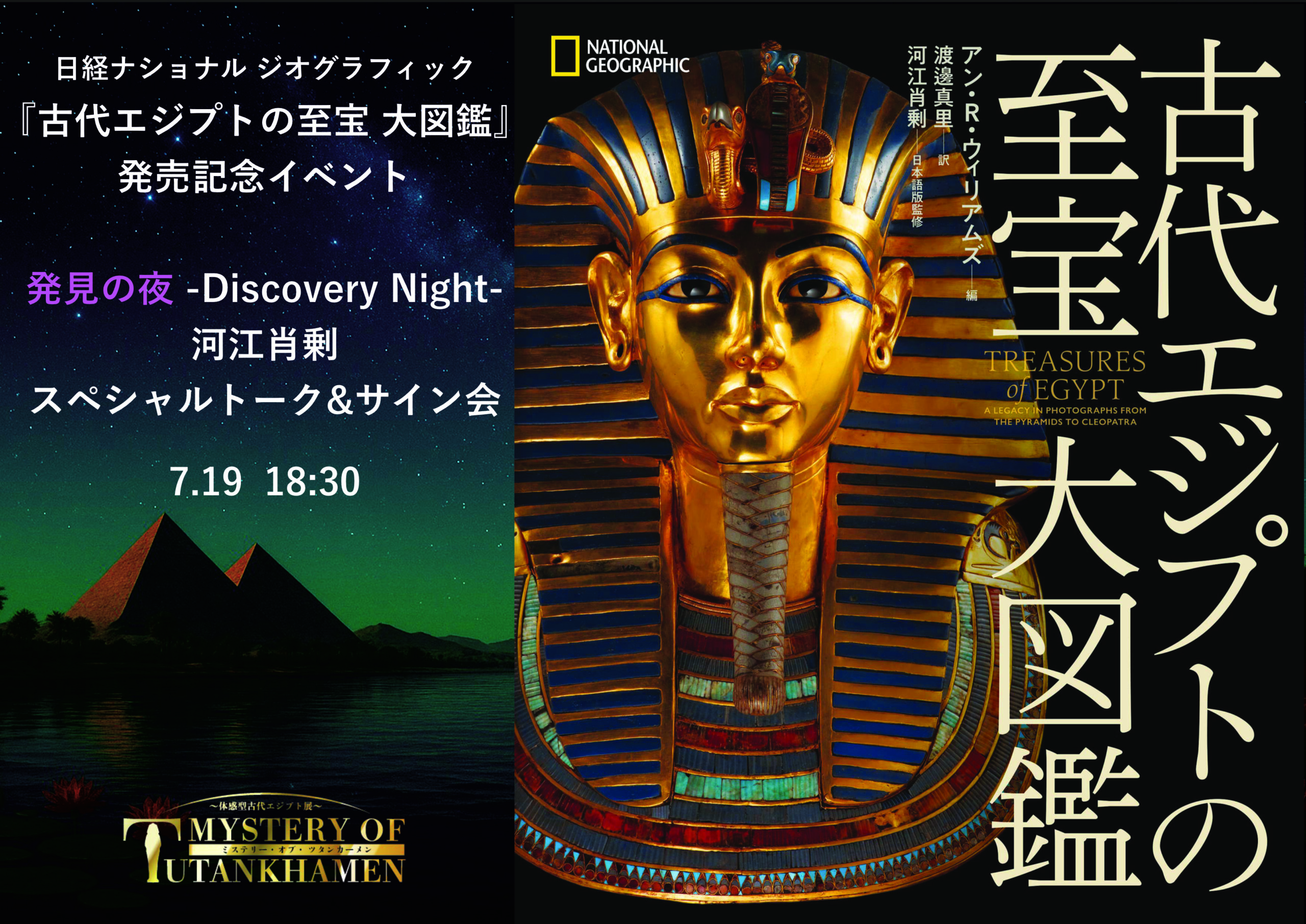 今回、『古代エジプトの⾄宝 ⼤図鑑』の発売を記念して、書籍並びに、当展示の監修を務めている、河江肖剰先生によるスペシャルトーク&サイン会を開催いたします。